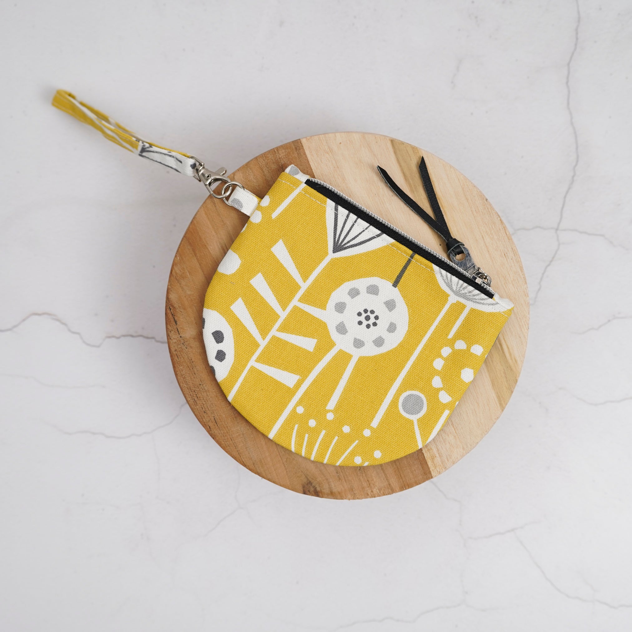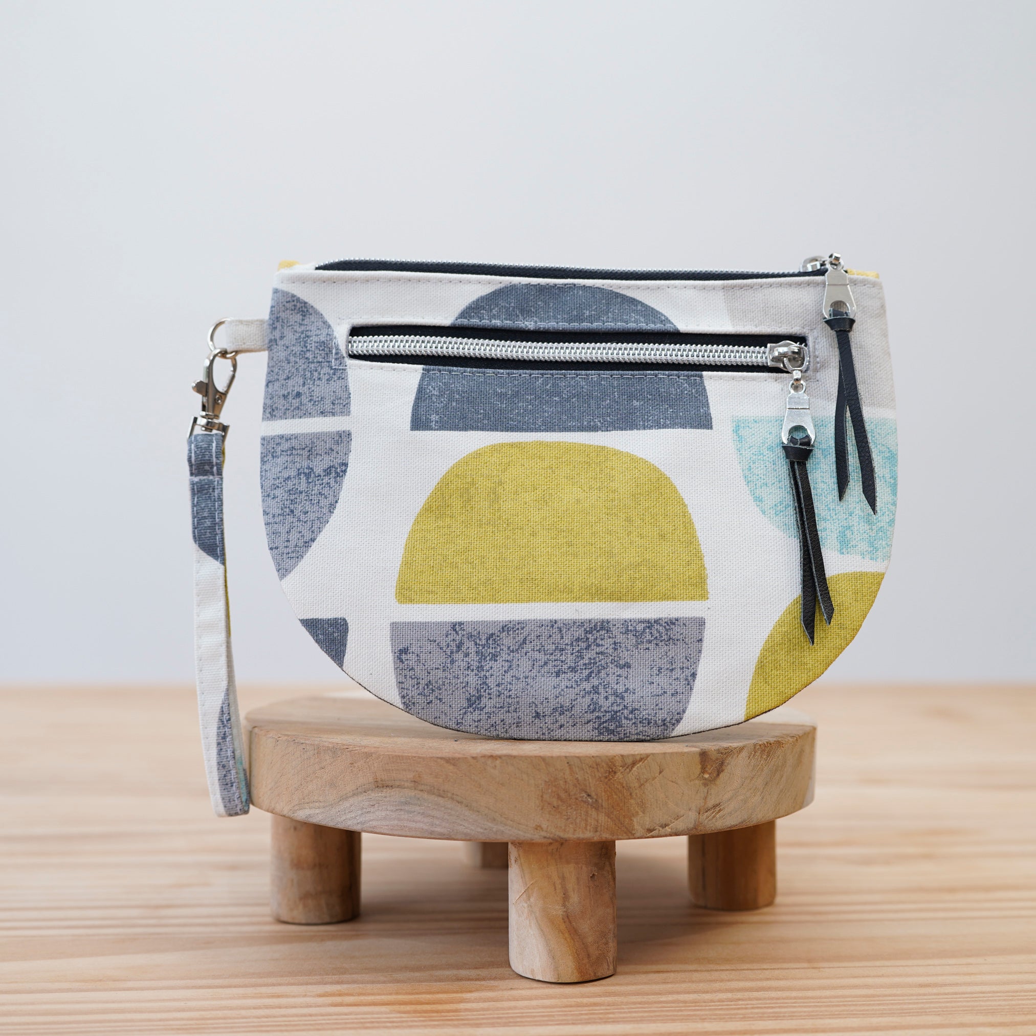 Featuring a sleek front zipper detail and detachable wristlet strap, this fully lined pouch is perfect for everyday essentials, evenings out, travel, or handmade gifts.