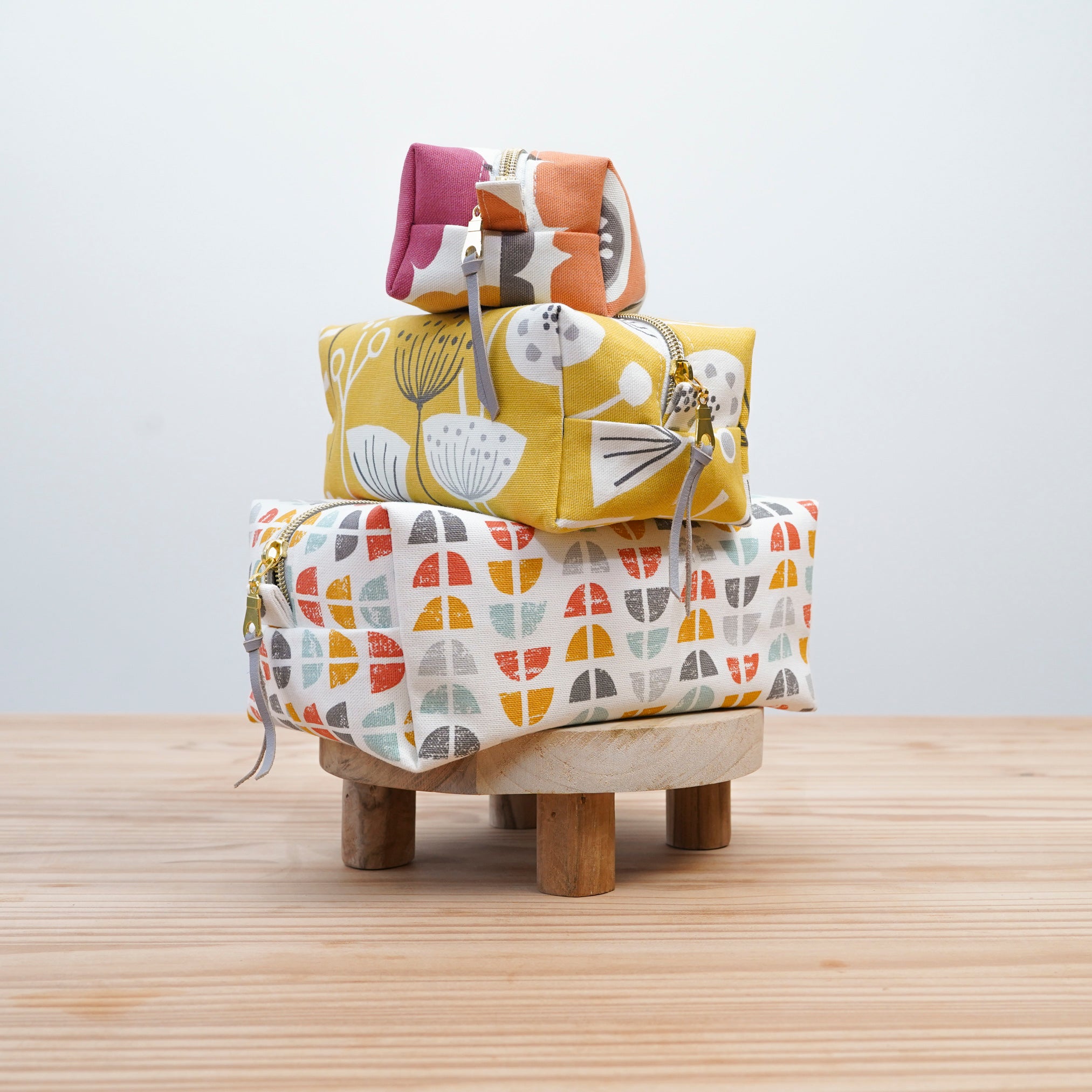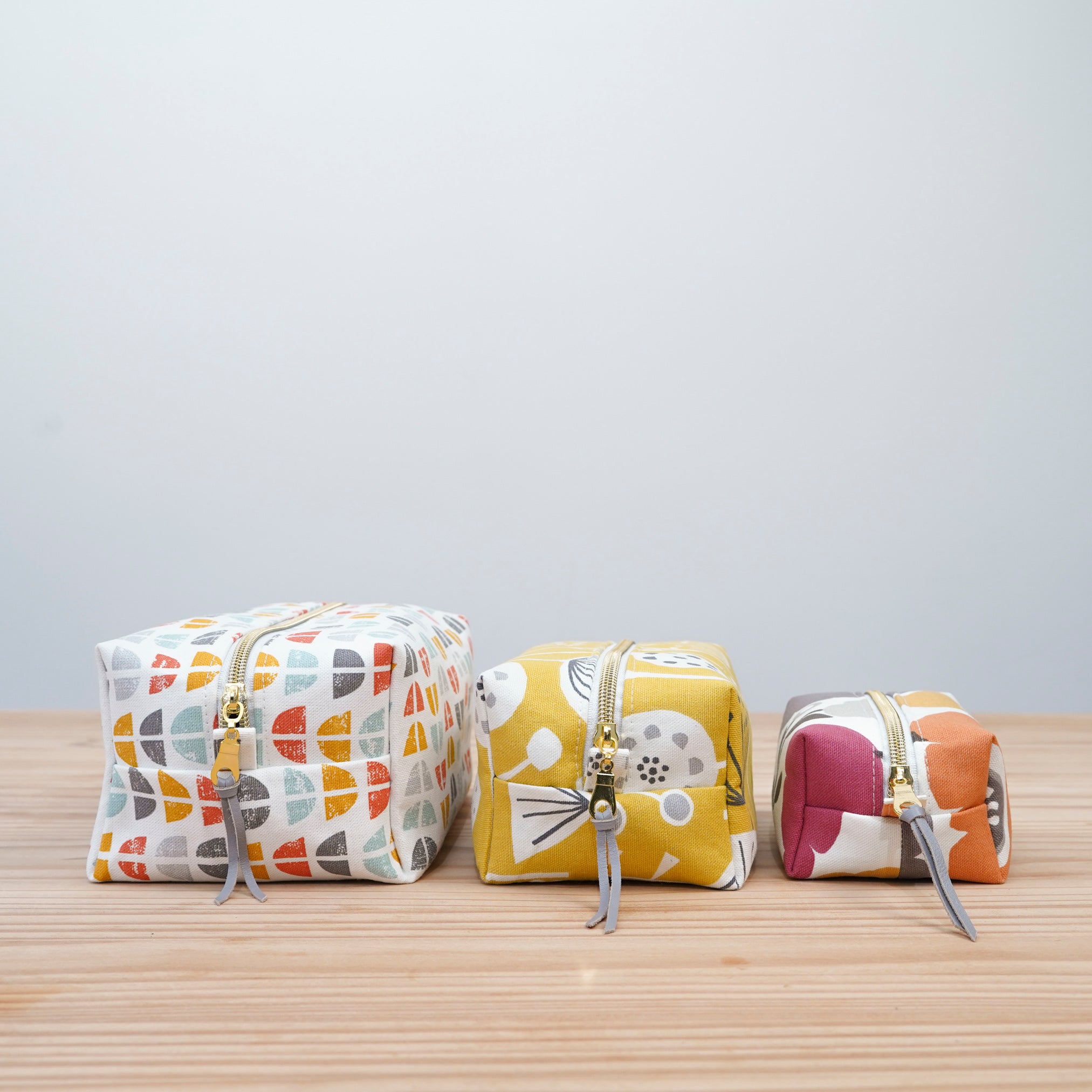 Sew your own stylish boxy bags with this beginner-friendly PDF sewing pattern and step-by-step video tutorial. Perfect for cosmetic bags, project pouches, or everyday essentials, these bags are practical, fun to make, and come in 3 sizes.